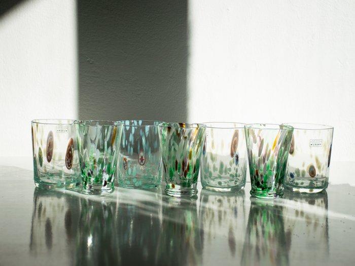 E’ forse per questo che ne sono sempre stata affascinata, fin da piccola quando giravo nelle calli di Venezia per mano ai miei genitori e ci fermavamo a curiosare nelle botteghe dei vetri. Abbiamo comprato alcune cose molto belle, che conservo con amore e, più recentemente ho comprato di slancio un set di bicchieri con le murrine, un amore immediato. Sono quelli che vedete in questa foto. Belli vero?